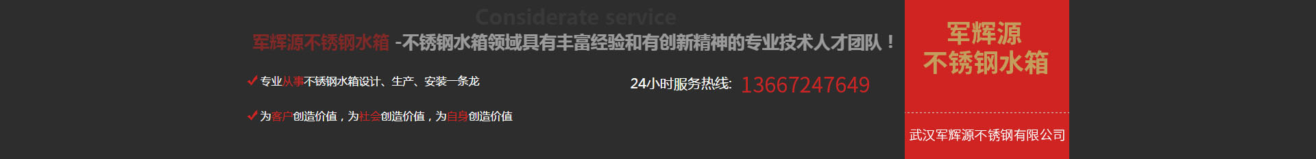 武漢軍輝源不銹鋼有限公司是華中地區(qū)專業(yè)生產(chǎn)不銹鋼水箱的環(huán)保企業(yè),公司集不銹鋼水箱開(kāi)發(fā)設(shè)計(jì)、生產(chǎn)、銷售、維修、售后服務(wù)為一體。